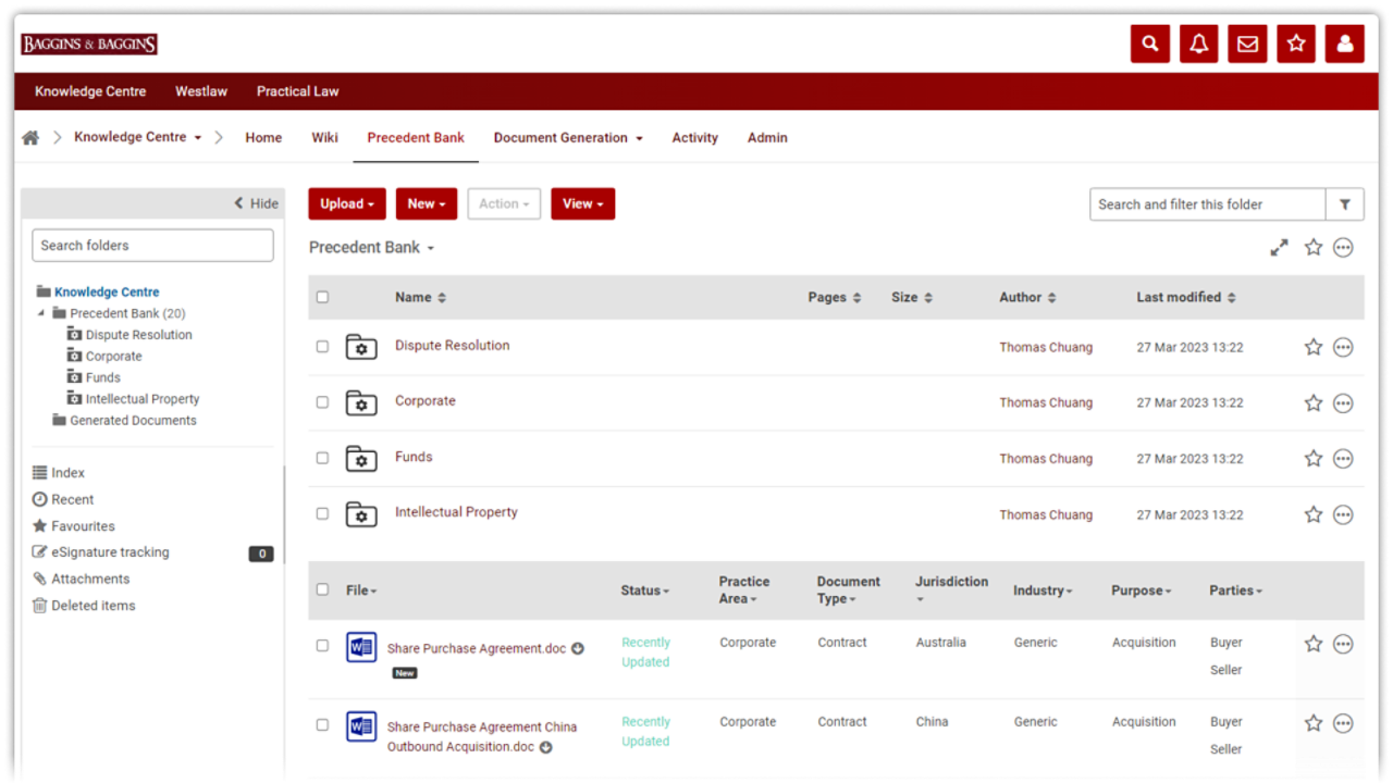 - Centralised precedent repository: Create a comprehensive bank of legal documents that serves as a centralised repository, providing easy access to proven templates and examples for efficient drafting.