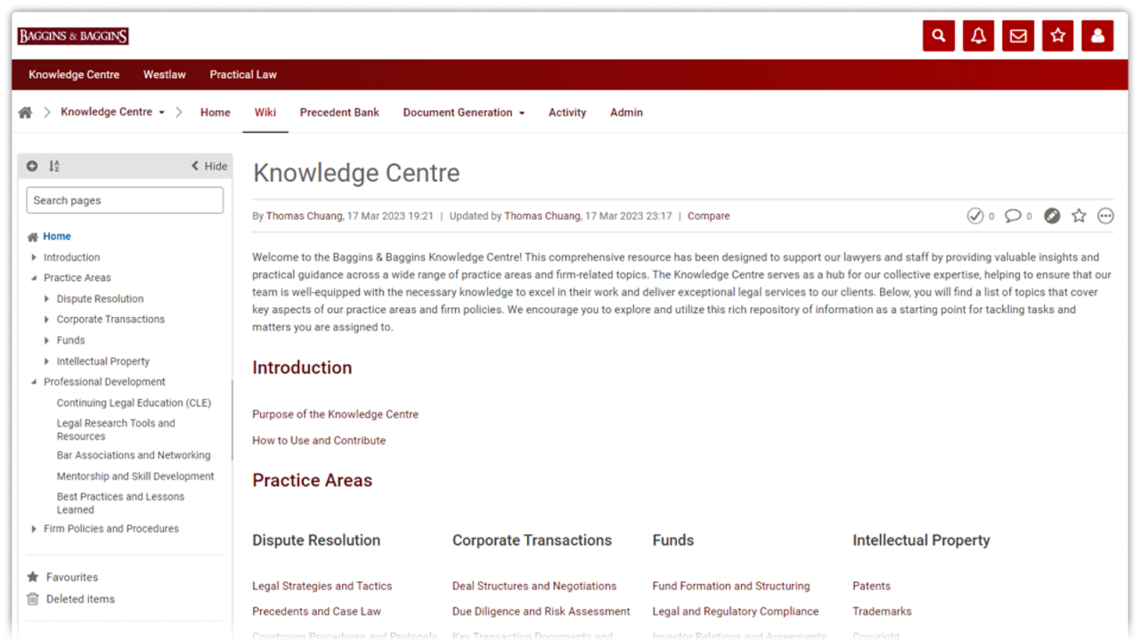 We needed a place to share legal know-how and updates, and find information quickly, along with the knowledge of who else had worked on particular areas in the past.